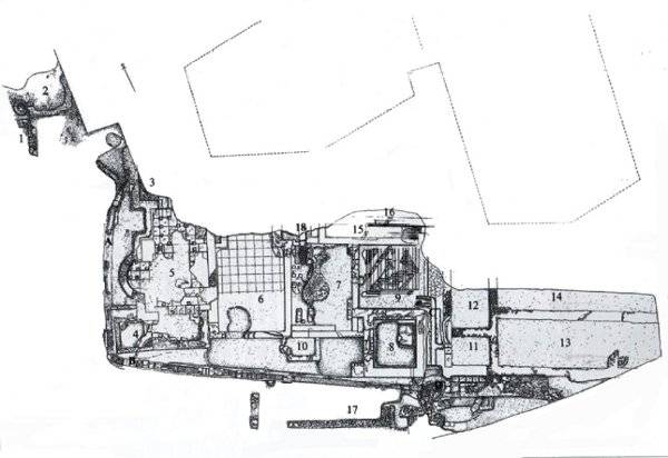 Nell'area 17 sono state individuate diverse strutture murarie non in connessione fra loro che, trovandosi al margine dello scavo sono state indagate solo parzialmente.