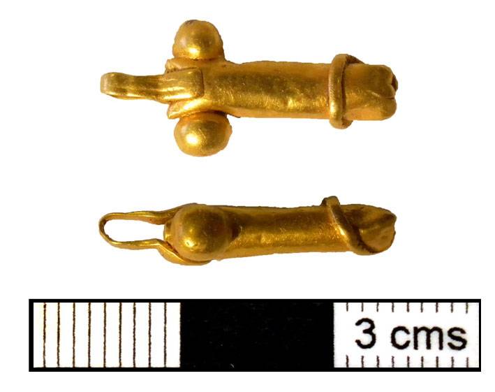 Un ciondolo d'oro romano dalla forma inconfondibile è stato oggetto d'una caccia al tesoro nel Norfolk, in Inghilterra. A forma di fallo, è stato trovato con il metal detector da Kevin Hillier ai primi di quest'anno e ora è citato come un vero tesoro nel Portable Antiquities Scheme.