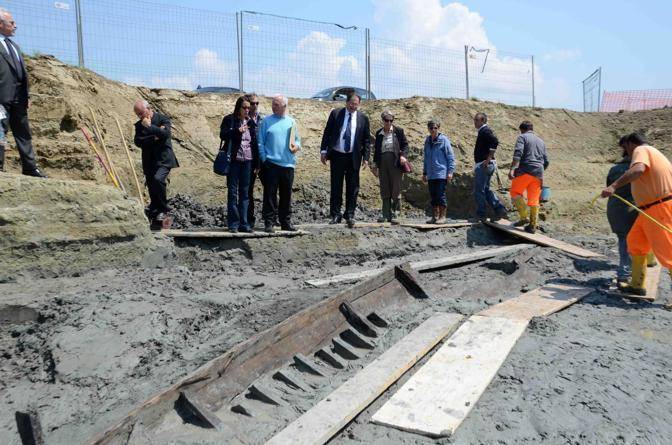 ARCHEOLOGIA PREVENTIVA - La fiancata destra dell'imbarcazione appartiene ad uno scafo ligneo della prima età Imperiale. Sul luogo degli scavi, il ministro dei Beni Culturali ha definito la scoperta "un ritrovamento da brivido". Quindi ha commentato: "E' un grande risultato dell'archeologia preventiva se si pensa a quante cose come questa sono andate disperse". L'operazione è stata "complessa e importante", ha aggiunto "e ci dice molte cose sulla linea di costa e su quello che succedeva circa duemila anni fa".