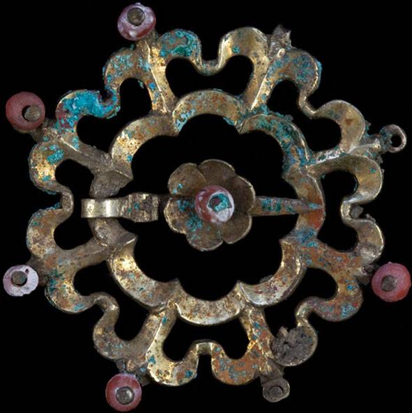 Il tesoro è costituito da oltre 200 tra anelli, fibbie per cinture ornate, piatti in argento placcati in oro ed altri pezzi molti tempestati di perle, corallo fossile, ecc.