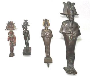 Una delle statue è di 37, 5 cm di altezza raffigurante il dio Osiride e la seconda è una statua di 18 cm del Dio Horus, quando era bambino.