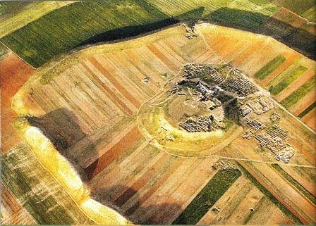 Gli scavi hanno riportato alla luce una vera e propria città, con un'acropoli fortificata punteggiata di grandi edifici regali ed il grande tempio dinastico; la città bassa disposta ad anello intorno alla collina sovrastante con i quartieri abitativi e numerosi edifici pubblici secolari e religiosi; un'imponente cinta fortificata costruita su un terrapieno artificiale che divideva nettamente il centro urbano (con un'area di circa 50 ettari) dalla campagna circostante. La mole ed il livello di finezza delle numerose opere d'arte che decoravano templi e palazzi fa intuire anche la qualità culturale del centro.