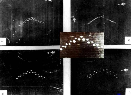 "Questa è, a mio parere, la più spettacolare delle fotografie. Mostra una regolare formazione di 18 oggetti a forma di disco nel cielo...sono incline a pensare che ciascuno di questi oggetti possa avere un diametro di 200 piedi circa (ndr circa 61 metri)", ha detto.