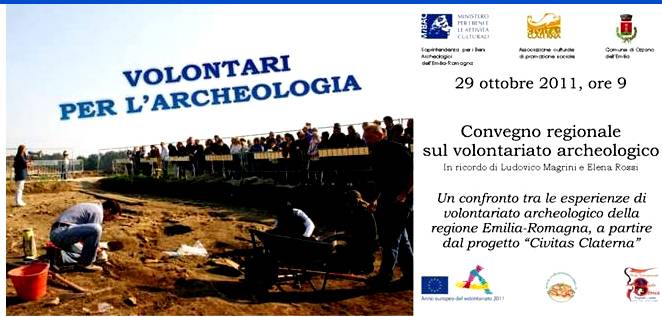 Volontari per l'Archeologia, volentieri in Archeologia. La Soprintendenza per i Beni Archeologici dell'Emilia-Romagna coglie l'occasione di un anno dedicato alla grande risorsa del volontariato per promuovere "Volontari per l'Archeologia", convegno regionale sull'importanza del volontariato per la tutela e la valorizzazione del patrimonio archeologico. Sabato 29 ottobre, a partire dalle ore 9, nel Palazzo della Cultura di Ozzano dell'Emilia (BO) i rappresentanti di 30 gruppi di volontariato archeologico si incontrano e confrontano per presentare le caratteristiche di questa appassionata attività.