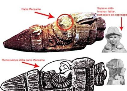 Come detto durante la descrizione del reperto, l'astronauta di Istanbul si presenta decapitato non solo della testa ma anche della parte superiore del veicolo spaziale nel quale è collocato.