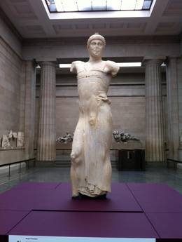 Il personaggio raffigurato nella statua in marmo di fattura greca "Giovinetto in tunica", esposta nel museo Whitaker di Mozia sarebbe Alcimedonte. L' autore dell'opera, secondo Lorenzo Nigro, docente associato di archeologia e storia dell'arte all'Università La Sapienza di Roma, avrebbe ritratto il capo mirmidone greco, figlio di Laerce, ricordato da Omero nei libri XVI e XVII dell'Iliade e descritto come un ottimo auriga che guidò personalmente il carro di Achille, trainato dagli immortali destrieri Balio e Xanto, fuori dal terribile scontro accesosi per la contesa del corpo di Patroclo, ucciso da Ettore. La statua è stata esposta al British Museum in occasione delle Olimpiadi di Londra e continuerà a viaggiare per il mondo ancora per circa un anno e mezzo. Soprattutto negli Usa, dove rimarrà a lungo nel "Paul Getty Museum" di Malibù. Nigro da undici anni, d'intesa con la Soprintendenza ai Beni culturali di Trapani e la Fondazione Whitaker, proprietaria di Mozia, dirige campagne di scavi sull'isola, che tra l'VIII e il IV secolo avanti Cristo fu importante colonia fenicia e centro egemone nel Mediterraneo. Il professor ha spiegato a Marsala che è stato possibile risalire all'identità del personaggio raffigurato nella statua grazie all'iscrizione ("Alkimedon") su un vaso di ceramica attico scoperto sull'isola nella zona dove sono state trovate le fondamenta del tempio ("Temenos") attorno al "Kothon", vasca per abluzioni effettuate nell'ambito di cerimonie religiose. Tracce di un tempio fenicio-punico, tra l'altro, finora non erano mai venute alla luce. Neppure a Cartagine. Il vaso di ceramica ("cratere di Alcimedonte") sarebbe stato commissionato in Attica dai moziesi e raffigura una scena di simposio. Nel posthomerica, dopo l'Iliade, si racconta che Alcimedonte venne trafitto mortalmente da Enea durante una delle tante battaglie sotto le mura di Troia. La statua del "Giovinetto in tunica", in passato esposta anche a Venezia (due volte) e a Berlino, è stata rinvenuta a Mozia il 26 ottobre del 1979, nel corso degli scavi effettuati nel settore nord-orientale, tra il santuario di Cappiddazzu e la cinta muraria. Secondo gli esperti sarebbe stata scolpita da un allievo di Fidia. Fu trovata sottoterra. Forse, fu nascosta nel corso della guerra con Siracusa (397 a. C.) per evitare che cadesse nelle mani del nemico.