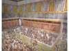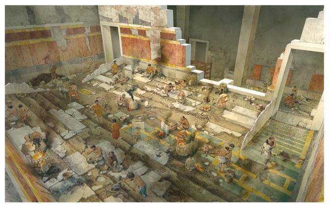 L'edificio pubblico scoperto era a due piani, privo della copertura crollata per il terremoto dell'847/848, "l'aula conservata meglio - continua Rea - presenta due gradonate, una di fronte all'altra, con sei lunghi gradini marmorei per parte, delimitati da grandi balaustre in marmo bianco che si rivolgono verso il centro dove c'è un piano orizzontale largo circa 3 metri, rivestito di lastre rettangolari di marmo bianco scandite da inserimenti in giallo antico".