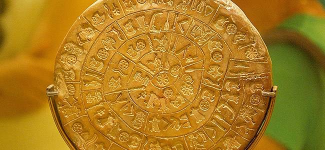 Queste incisioni non furono fatte a mano, ma realizzate con 45 punzoni, fatto altrettanto ambiguo per l'epoca, poiché il primo a usare i punzoni fu un certo Gutenberg solo 3000 anni più tardi. Prima di stabilire la sua origine cerchiamo di chiarire che cosa potrebbe rappresentare questo disco. Per alcuni si tratterrebbe o di un inno religioso o di un canto di guerra, o anche di una profezia magica.