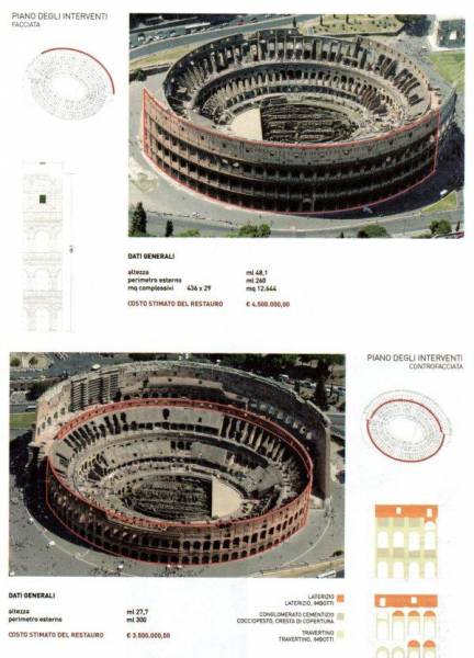 Per questo siamo andati a rintracciare le parti sull'Anfiteatro Flavio tra le sue 400 pagine, a suo tempo da noi ampiamente commentate, dove abbiamo trovato notizie più specifiche sulla terza fase di interventi, alla quale si è solo accennato nella presentazione dato che il progetto da porre a base d'asta è ancora in corso di redazione sulla base dei dati ottenuti con ricerche e cantieri-campione. Riguarda il restauro degli ambienti interni, in particolare gli ambulacri e i due terzi dei sotterranei (ipogei), e le opere impiantistiche cioè gli impianti tecnologici".