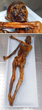 Nel 1991, due scalatori tedeschi sulle Alpi dell´Italia settentrionale scoprirono i resti di un uomo vissuto 5200 anni or sono - nell´Età del Rame - congelati in un ghiacciaio. Il cadavere, straordinariamente ben preservato, ribattezzato "Oetzi, l´Uomo dei Ghiacci" è stato trovato con un corredo di attrezzi, frecce ed un coltello.