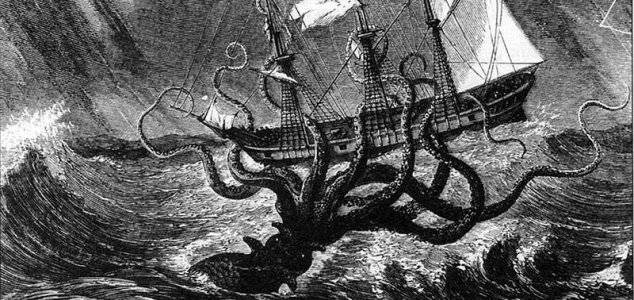 Il mitico Kraken è la piu' infame delle creature marine. E' stato oggetto del folklore popolare per secoli. Spesso è stato raffigurato come un gigantesco calamaro che attaccava dal basso le navi stritolandole con i suoi tentacoli per cibarsi del loro contenuto.