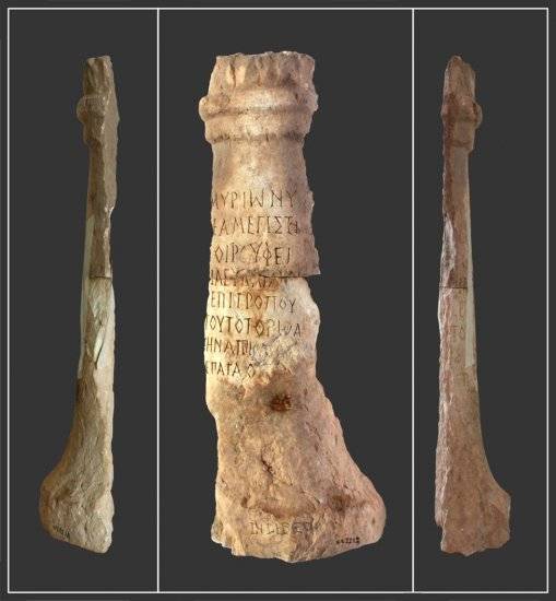 L'iscrizione ritrovata durante lo scavo del 2008 è stata oggi integrata e ricomposta per intero con un secondo grande frammento che era custodito dal 1903 nei magazzini del Museo Whitaker sull'isola di Mozia: grazie all'attenta ricognizione della dott.ssa Toti, conservatore del museo dell'isola, è stato possibile identificare il frammento che recava il cartellino di provenienza con indicato "Terre Trapani di Capo Boeo"esattamente la stessa località dello scavo, nell'attuale parco archeologico; oggi è stato possibile ricomporre per intero l'iscrizione, che è stata quindi attentamente decifrata dalla prof.ssa Brugnone.