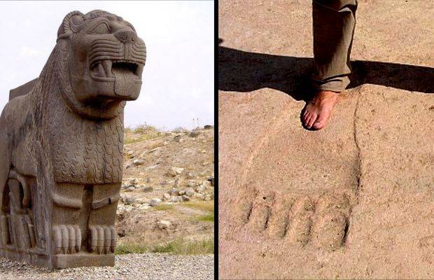 Il tempio di Ain Dara, situato a nordovest di Aleppo, Siria, è una costruzione Ittita realizzata circa 3300 anni fa, noto per la sua somiglianza con il Tempio di Salomone descritto nella Bibbia ebraica. Insieme alle notevoli sculture che raffigurano leoni e sfingi, grandi orme di piedi sono scolpite nel pavimento, lasciando aperto il dibattito su chi fosse la divinità a cui era dedicato il luogo di culto.Ain Dara, un piccolo villaggio situato a nordovest di Aleppo, in Siria, vanta una notevole sito archeologico scoperto nel 1955, in maniera del tutto casuale.