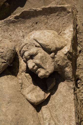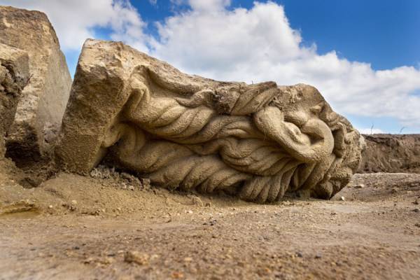 "Questa signora anziana è descritta in due testi antichi" a proposito degli amori di Venere-Afrodite, spiega Véronique Brunet-Gaston, responsabile di questo scavo condotto a Pont-Sainte-Maxence, in Francia, su un sito che dovrebbe accogliere un centro commerciale. La vecchia e la dea, pietrificate, fanno parte di un insieme architetturale eccezionale che la sua squadra ha svelato dopo due mesi. Un santuario della seconda metà del II secolo d.C., il cui pezzo forte era una facciata lunga 90 metri, alta 9.5, e spessa solo 1.