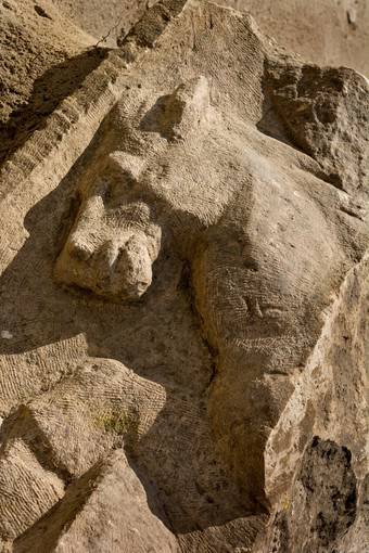 A prima vista, quel cumulo di pietre calcaree, a bordo di una strada statale, è qualcosa di indecifrabile. Avvicinandosi, si distinguono delle forme scolpite, animali o vegetali, a volte geometriche. Più lontano, spunta un enorme orecchio umano, un corno, un cavallo mentre nitrisce, delle ali di grifone rotte. Avanziamo ancora tra pozzanghere e suolo sabbioso, fino a questa donna inginocchiata, il cui busto svanisce tra le rocce. A lato, il viso di una signora anziana sembra sussurrare una storia dimenticata.