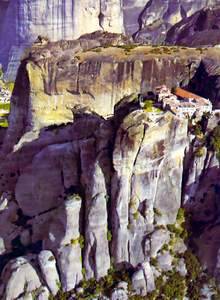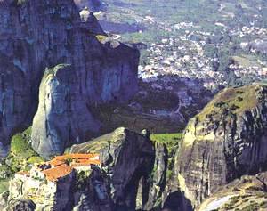E' uno dei paesaggi greci più belli, un panorama ed un paesaggio mozzafiato, uno di quelli che fa del paese ellenico uno dei più suggestivi e visitati al mondo. Stiamo parlando delle cosiddette "rocce delle meteore", enormi massi di colore scuro, che si innalzano all'estremità della pianura tessalica, nella parte nord del paese e che creano un quadro grandioso, aspro e selvaggio, che richiama per l'appunto a delle meteore. Il nome, deriva dal fatto che questi blocchi di roccia, sembrano venuti dall'alto, si installano quasi improvvisamente nel cuore della pianura tessalica e chiunque mette piede da queste parti, rimane per ore con il naso all'insù, a fissare questa meraviglia di madre natura.Le meteore non sono disabitate; in mezzo a queste rocce, emergono dei monasteri. Sono tre per la precisione: il monastero di Varlaam della Trasfigurazione e di S. Nicola Anapafsa, tre come le componenti della Trinità e pare che la loro installazione in cima a queste meteore, non sia stata effettuata per motivi difensivi, bensì per rappresentare un modello di cristianità che sorveglia dall'alto tutta la Grecia.