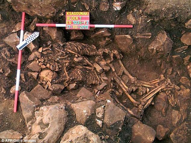 La sepoltura greca, che sembra non abbia subito violazioni, è stata trovata presso il luogo dove erano stati interrati un altro uomo e un'altra donna, rinvenuti accovacciati in posizione fetale. Le sepolture contenevano anche punte di freccia rotte.