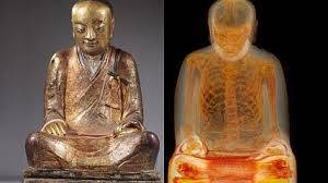 Il corpo mummificato di un monaco, eviscerato e in posizione di meditazione, all'interno di una statua di Buddha risalente a oltre mille anni fa: è quanto scoperto dai ricercatori olandesi dopo aver sottoposto a TAC la scultura su richiesta del Drents Mouseum, in Olanda. Gli esperti della Meander Medical Centre di Amersfoort, che si stanno occupando del caso, ritengono che l'uomo nascosto come una matrioska all'interno della statua dovrebbe essere il maestro buddhista Liuquan della Scuola di Meditazione Cinese, vissuto nell'11mo secolo. Un'endoscopia ha inoltre evidenziato nella cavità addominale frammenti di fogli di carta scritti in cinese. Campioni di ossa sono stati inviati in laboratorio per i test sul DNA. I responsabili del museo che hanno esposto la statua l'anno scorso, hanno detto di essere già a conoscenza del corpo conservato all'interno, ma di non conoscere l'identità della mummia, né il livello di conservazione. La scoperta è di fondamentale importanza in quanto si tratta dell'unica mummia cinese buddhista di cui l'Occidente dispone per condurre studi.