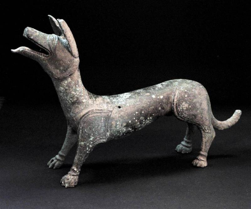 Il cane di bronzo, nell'atto di leccare, si è conservato intatto e costituisce una scoperta unica nel suo genere nella storia britannica. Gli archeologi ritengono avesse scopi curativi e che provenisse dal tempio romano di Lydney, un tempio di guarigione dove sono state trovate diverse offerte votive, tra cui rappresentazioni di cani che guariscono le ferite che leccano.