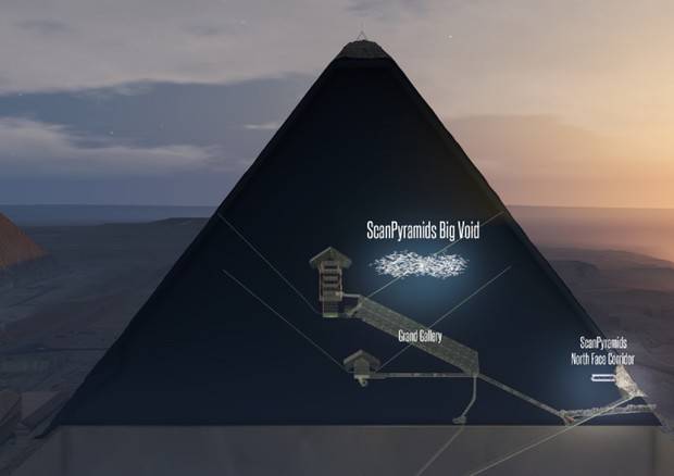 La piramide di Cheope non smette di stupire: al suo interno è stata individuata una nuova misteriosa cavità, lunga almeno 30 metri, posta al di sopra della Grande Galleria. Lo annunciano su Nature i ricercatori del progetto internazionale ScanPyramids, che da due anni stanno scrutando nel 'cuore' della più grande e antica delle tre piramidi della piana di Giza, vicino il Cairo, usando tecniche di rilevamento non invasive basate sulla fisica delle particelle.