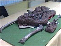 The bones of the Iron age manLe ossa sono state esaminate dagli esperti dell´Università di Lampeter. Al tempo della scoperta, si credette che l´uomo fosse morto in un incidente, mentre tentava di recuperare l´imbarcazione.