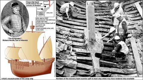 Gli storici al lavoro sulla nave di Newport, recuperata nel Nuovo Galles due anni or sono, ritengono che sia stata proprietà del Conte di Warwick nel corso della Guerra delle due Rose.