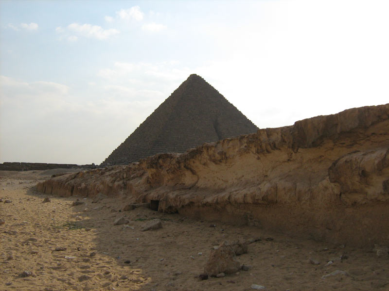Concordemente alle conoscenze da anni acquisite dagli studiosi, secondo la documentazione nota, in conseguenza dell´attenta analisi dei dati raccolti e, soprattutto, in base alle fondamentali osservazioni effettuate in loco, si può affermare, con un grado di probabilità molto prossimo alla certezza, che le tre piramidi di el-Giza furono costruite dall´alto e non dal basso come si è erroneamente supposto fino ad oggi. L´idea, che a prima vista può sembrare stravagante, è invece robustamente supportata e quasi direttamente dimostrata collazionando le numerose indicazioni ricavate dall´ispezione del sito individuato con le due esplorazioni "Operazione Sfingi 2007". Diventa estremamente chiaro in effetti, se è vero che la zona focalizzata era "anche" una cava a cielo aperto, ambiente sfruttato quindi con un estremo senso pratico, dimostrando una volta di più la gran capacità logistica maturata dagli antichi costruttori egizi, che calare dall´alto, o quanto meno, muoversi in orizzontale con il materiale di sbancamento ricavato dal sito in discorso era d´estrema semplicità tecnica ed esecutiva (a questo proposito incominciano ad avere un senso preciso le rampe, le slitte e così via. Dalle immagini si può comprendere, infatti, che la dimensione delle rampe da creare ed utilizzare partendo da questo punto della piana di Giza per raggiungere le piramidi, tecnicamente non era affatto proibitivo, anzi ...).