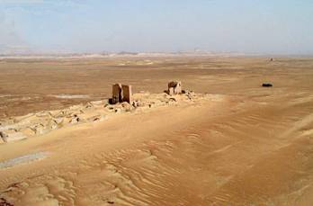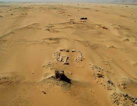 Il lavoro dei ricercatori si svolge nel primo mattino ed alla sera, quando le rovine, alcune delle quali quasi completamente sepolte nella sabbia, gettano ombre sul terreno arido e roccioso. La prospettiva aerea permette ai ricercatori di individuare figure non distinguibili da terra.