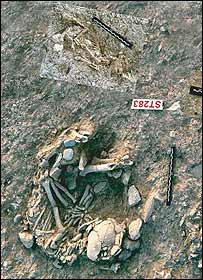 La persona, nei suoi trent´anni di età, ma di sesso indeterminato, era seppellita con alcune pietre lucidate, asce, strumenti di selce e pigmenti d´ocra come offerte votive.