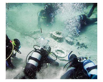 L'archeologia subacquea non è ovviamente diversa dall'archeologia terrestre, usano tecniche simili, anche se gli scavi subacquei sono più complicati da intraprendere e richiedono apparecchiature speciali e anche competenze specifiche. Nel nostro caso, le condizioni di lavoro sono stati particolarmente complesse. In assenza di una barca dovevamo trasportare bombole e attrezzature per la spiaggia a piedi. Per sfruttare al massimo il nostro tempo, decidemmo di fare due immersioni al giorno. Tre ore al mattino, seguite dalla ricarica delle bombole sulla riva, e altre tre ore nel pomeriggio. Dovevamo quindi comprare tutte le nostre attrezzature, pulirle e mantenerle, compilare un inventario di ciò che avevamo trovato... e poi cucinare la cena. Compresa la squadra d'appoggio a terra, avevo circa una dozzina di bocche da sfamare ogni sera.