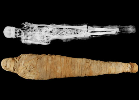 Le 2.950 immagini prodotte sono servite per una ricostruzione in 3D che ha rivelato una serie di sorprese. Non solo, infatti, le bende della mummia non riportano il nome del defunto e mancano completamente gli amuleti che avrebbero dovuto accompagnare il suo viaggio nell'aldilà.