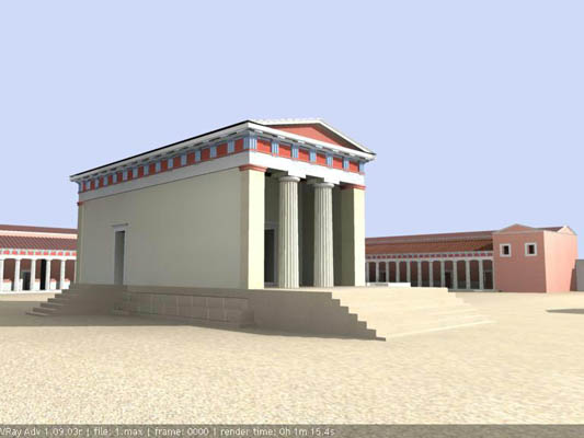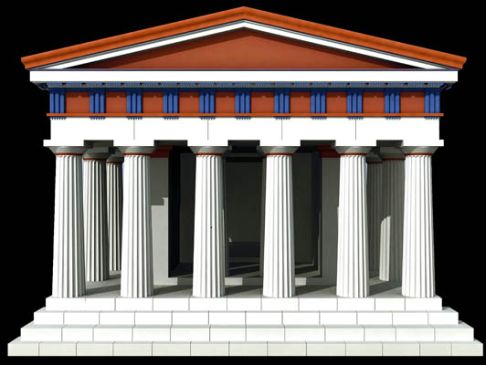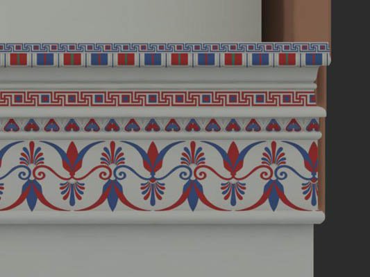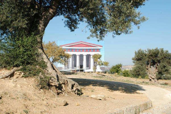 Una pennellata che faceva brillare di bianco ardente tutte le colonne e che spandeva luce briosa, attingendo a una tavolozza ristretta di colori, sulle altre parti tinteggiate principalmente, almeno in Sicilia, di bianco, di rosso e di blu. Oggi dal passato ci arriva questa foto a colori. Un paesaggio variopinto, quello che circondava i templi dorici dell´antichità classica, che getta una luce diversa sull´antica Akragas. Giungono a questa fascinosa conclusione estetica i risultatati di lunghi studi di restauro che oggi, attraverso ricostruzioni virtuali e con il sostegno di video filmati, mostrano i monumenti greci nella loro originaria policromia.