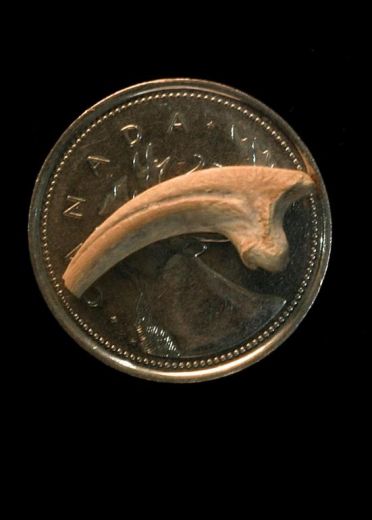 Paradossi della natura: a pochi giorni, ma a molti chilometri di distanza, sono stati rivenuti due fossili di animali preistorici di dimensioni molto diverse. In Canada i ricercatori dell'Accademia nazionale delle scienze hanno scoperto i resti di un "hesperonychus elizabethae", quello che potrebbe essere il dinosauro carnivoro più piccolo mai vissuto negli Stati Uniti. (In questa immagine un artiglio).