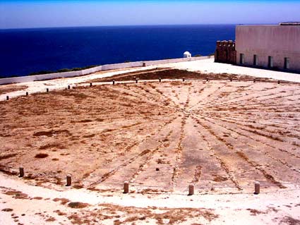 Nella fortezza di Sagres, nell´Algarve, sulla costa meridionale del Portogallo, su una grande roccia dalla cima piatta, che domina il mare, cinque km ad est del Cabo de São Vicente, il principe Enrico di Aviz, detto il Navigatore (1394–1460), Gran Maestro dell´Ordine del Cristo, istruiva i marinai delle proprie flotte. In quel castello fu scoperto nel 1928 un cerchio orizzontale, fortemente corroso, irregolarmente inciso nella pietra.