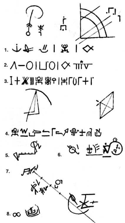5, 6, 7. La vocalizzazione delle formule matematiche è definita "incerta" da Barry Fell.