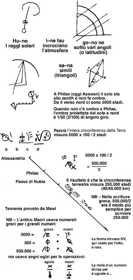 Quarta riga – He–ra–to–ti–ne è la forma maori per Eratostene.