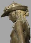 Nel Davide bronzeo vediamo una singolare commistione di motivi che si fondano su una rinnovata riflessione sull´antico che Donatello propone proprio in questi tardi anni ´30, diciamo dal pulpito di Prato (1428-1438) alla cantoria di Santa Maria del Fiore (1433-39). Ecco qui dunque un corpo efebico, modellato sulla scultura romana di epoca augustea e adrianea, fra il primo secolo e gli inizi del secondo, scultura che l´artista ripensa attraverso la lustra, morbida tensione del bronzo. Lo stesso modello torna nel volto geometricamente scandito del giovane guerriero, che ricorda quello della Fede del fonte Battistero di Siena (1429), mentre, sotto, la testa mozza del Golia riprende le forme della scultura gotica del resto evidenti nei Profeti scolpiti da Donatello per il campanile di Giotto.