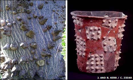 I tronchi spinosi dell'albero Ceiba sono rappresentati in vasi di ceramica utilizzata come urne di sepoltura o contenitori d'incenso, che sono concepiti in modo sorprendentemente simile alla loro forma. Due altre specie di albero, la (Pachira aquatica) e la (Pseudobombax ellipticum), sono copiate nella progettazione di simili vasi.