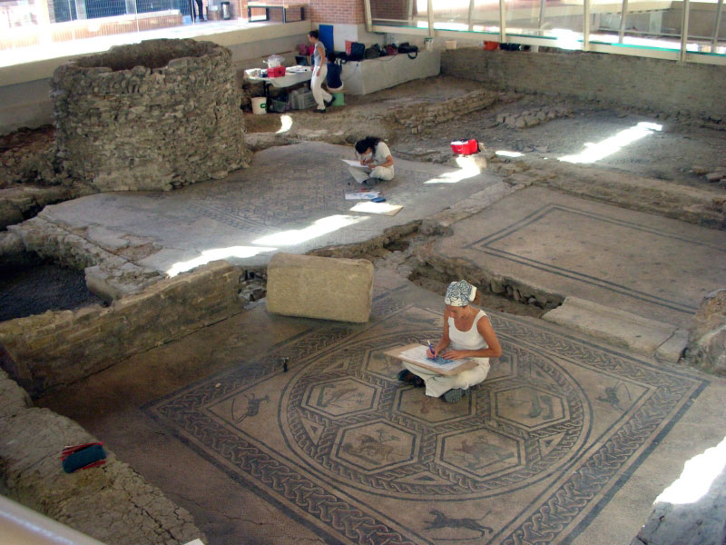 L´anno scorso la Scuola per il Restauro del Mosaico aveva svolto una campagna di studio e pronto intervento sui pavimenti musivi dell´area archeologica per analizzare il loro stato di conservazione. Tanto i mosaici della Domus del Chirurgo (seconda metà del II secolo) quanto quelli dell´edificio tardo antico (V-VI secolo) sono stati oggetto di una serie di studi ed interventi che hanno spaziato dai rilievi metrici ed iconografici all´analisi delle antiche tecniche di costruzione, dalle osservazioni macroscopiche dei materiali alle operazioni di pulitura fisica e consolidamento degli elementi mobili.
