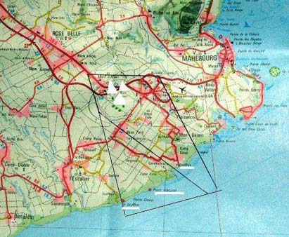 Inoltre abbiamo trovato tre caverne straordinarie: Una (A) con l´ingresso nella Plaine Magnien, semi–allagata. Un´altra (A´) un po´ più a nord di A, totalemente inondata. Una terza (C) 4km a sud di A, chiamata "la caverna delle rondini", che il gruppo ha seguito per 70 m sino a dei massi franati, che bloccano il passaggio. Le tre caverne hanno entrate monumentali, a forma d´arco regolare, e sono quasi identiche. Ma soprattutto, all´interno, esse sono immense, larghe più di 20m. La rifinitura di queste grotte non sembra un fenomeno naturale, ma opera della mano dell´uomo (e non di poveri schiavi fuggitivi). Si tratta di vani sistemati con il lavoro umano.