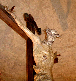 Uno di questi crocifissi, con la testa snodata, fa oggi bella mostra di sé nell´abside della Pieve romanica di Viguzzolo, a pochi chilometri dalla città piemontese di Tortona.