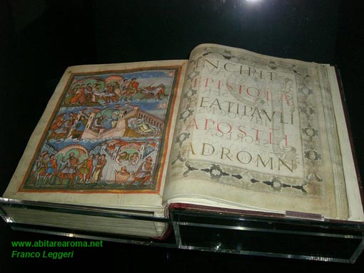 Il visitatore può ammirare la preziosa Bibbia, custodita e protetta in una teca di cristallo, aperta alla pagina dell´Epistola ai Romani di San Paolo. La Bibbia Carolingia si compone di 337 fogli di pergamena di pecora e di vitello, la copertura è in marocchino rosso. Ha 24 miniature bellissime e ancora "fresche". Fu commissionata dal Re Carlo il Calvo intorno all´anno 866 al monaco Ingoberto per farne dono al Papa Giovanni VIII.