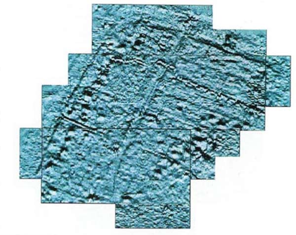 Oltre a questi allineamenti, sono presenti altre anomalie interessanti; si tratta di anomalie bipolari molto intense (individuabili come macchie di colore rosso e blu nella mappa a curve di livello), per lo più confinate entro una striscia larga una trentina di metri nella aprte nord dell'area, mentre nel settore meridionale anomalie simili per forma e intensità sono disposte in maniera tale da ricordare l'andamento di un meandro fluviale. Queste anomalie sono ben riconoscibili anche nella shaded relief map (foto 2), dove ricordano i crateri lunari.