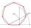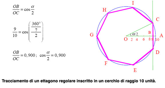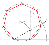 Dal punto di vista geometrico, la divisione del cerchio in sette parti è un'operazione che non si può compiere con precisione, con la squadra e il compasso. Alla divisione del cerchio in 14 settori corrisponde un inusuale angolo al centro di 25°42'20". Esiste - è vero - una semplice, rapida costruzione per individuare la misura del lato dell'eptagono inscritto, ma si tratta di un'operazione non esatta, approssimata a meno di 1/100.