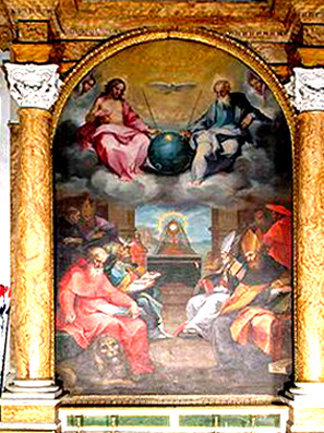 Se andiamo ad esaminare le molte icone ubicate nelle chiese dell´Est, nella maggior parte di esse è possibile vedere raffigurate sfere o globi con le medesime rappresentazioni e schemi. Al centro dell´icona campeggia o la persona di Cristo o tutta la Trinità. Dunque a ben vedere, pure il dipinto del Salimbeni non si allontana da questo schema d´indagine, presentando molti punti di contatto con i dipinti di area ortodossa.