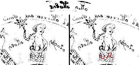 La foto mostrata in Figura 1 è la prima della coppia di carte astrologiche in Z3610559, scaricata dalla Yale University, Beinecke sito web Biblioteca manoscritti rari. E' stata caricata in Photoshop in cui è stato convertito da RGB a scala di grigi per aumentare la definizione e il contrasto rafforzato. L'immagine allo specchio è stata ottenuta utilizzando l'opzione flip orizzontale. Non c´è stata ulteriore manipolazione delle immagini, tranne per il taglio e l´ingrandimento di parti della foto. Chiunque abbia un computer, l'accesso a Internet e Photoshop, può quindi ripetere le immagini di cui sopra. L´altro disegno astrologico fa parte di Z3610559, è anche un Ariete tabella con 15 onorevoli poco e un paio di piazze decorative indicazione circa alla stessa ora della notte, come la vasca con il bambino. L'immagine speculare del nome sotto l'ariete appare anche come Lionardo. Z3610559 purtroppo è una delle più povere del scansioni che la Biblioteca Beinecke offre al pubblico. La maggior parte delle altre sono piuttosto buone e si spera che questa possa essere migliorata. Non di meno è abbastanza buona per mostrare i punti che sto cercando di studiare e sono grata che la Biblioteca Beinecke si sia presa la briga di condividere il manoscritto con il resto del mondo. Se hai problemi ad accedere alle immagini, chiamare la Biblioteca. Sono estremamente gentili.