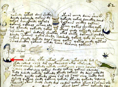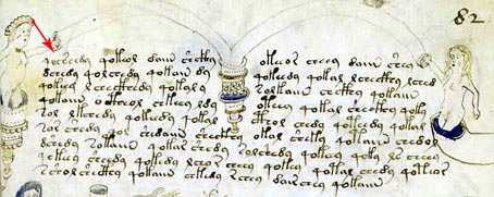 Le pagine che seguono contengono le sezioni del manoscritto Voynich, con parole che sono state decodificate utilizzando il metodo degli anagrammi. La prima riga sopra il testo del manoscritto Voynich è l'interpretazione moderna inglese delle lettere. La seconda linea è un anagramma italiano di queste lettere. La terza linea è l'anagramma tradotto in inglese.