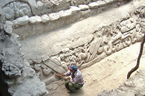 Investigando nella città di El Mirador, nella foresta pluviale di Petén (Guatemala), la squadra dell´archeologo Richard Hansen ha scoperto un pannello scultoreo con una delle più antiche rappresentazioni del mito della creazione Maya, il Popol Vuh.