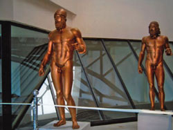 Nel 2003, mentre a Reggio divampava la polemica contro la giunta Chiaravalloti e la città insorgeva contro la clonazione dei Bronzi, uno scultore di Rieti, Dino Morsani, ne aveva fatto le copie e le aveva vendute ad Atene perché venissero esposte alle Olimpiadi dell'anno successivo. Cosa che poi non si avvenne, ma i Guerrieri copiati, praticamente conformi agli originali (ci sarebbe solo un centimetro di differenza in altezza per uno dei due) si trovano adesso in bella mostra nel Salone dei Congressi di Tebe, con lo sfondo di Micene!
