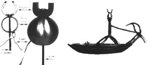 Si tratta di un semplice magnete, montato su un'asse che passava all'interno di una sfera o, preferibilmente (vedi il caso della navicella), di un cerchio o anello rotante. Il magnete, per una legge ben nota, puntava sempre verso i due poli terrestri, indicando la direzione da tenere all'equipaggio indaffarato. Per evitare gli sfasamenti dovuti al rollio e la vento, al cerchio o alla sfera erano appesi dei nastri stabilizzatori di cuoio pesante. Sembra di sentire Alcinoo tessere le lodi delle sue navi a Ulisse: "Le navi dei Feaci non han bisogno di timone o di timoniere, ma vanno col pensiero dell'uomo..."